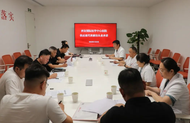 為貫徹落實(shí)省衛(wèi)健委黨組關(guān)于反腐倡廉和行風(fēng)建設(shè)工作部署,進(jìn)一步加強(qiáng)醫(yī)院行風(fēng)建設(shè),7月20日下午,西安國(guó)際醫(yī)學(xué)中心醫(yī)院舉行供應(yīng)商廉潔溝通會(huì)。楊峰副院長(zhǎng)、相關(guān)部門(mén)負(fù)責(zé)人出席,藥品和耗材供應(yīng)商代表等參會(huì)。