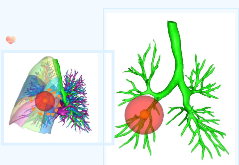 據(jù)王武平主任介紹,胸外科團(tuán)隊(duì)目前已常規(guī)開(kāi)展不同部位肺小結(jié)節(jié)的聯(lián)合肺亞段切除術(shù),為肺小結(jié)節(jié)患者提供個(gè)體化的治療。術(shù)前進(jìn)行三維重建,以磨玻璃結(jié)節(jié)為中心,勾勒出病灶周?chē)?cm切緣球,規(guī)劃切除范圍和路徑,保證足夠切緣,實(shí)現(xiàn)肺結(jié)節(jié)的精準(zhǔn)切除和患者快速康復(fù),該技術(shù)既能實(shí)現(xiàn)肺結(jié)節(jié)的切除治愈,又能最大程度保留患者的肺功能,是目前針對(duì)早期肺磨玻璃結(jié)節(jié)肺癌較先進(jìn)的外科診療技術(shù)。