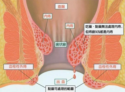 3.痔瘡便血和便秘的惡性循環(huán),使人厭食,造成脾胃功能的失常,導致肛裂、慢性結(jié)腸炎、肛瘺、腸癌等發(fā)生。