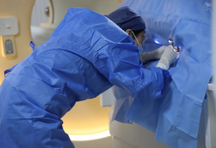 陳寶瑩評(píng)估圖像后發(fā)現(xiàn)病變?yōu)閮H僅在磁共振增強(qiáng)時(shí)顯示,為非腫塊樣病變,比較散,必須取得足夠多的組織才能確保病理檢查的準(zhǔn)確性,常用的核芯針活檢獲取的組織較少,因此最終確定了磁共振引導(dǎo)下行真空輔助抽吸旋切活檢。取得患者及家屬認(rèn)可后,陳寶瑩帶領(lǐng)團(tuán)隊(duì)開始進(jìn)行術(shù)前準(zhǔn)備。