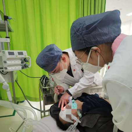 時間回溯到11月1日,曾在西安國際醫(yī)學中心醫(yī)院眼科接受過結(jié)膜囊狹窄口唇粘膜移植術(shù)的患者胡先生(化名),獨自從榆林前往西安復診。早8點還未到上班時間,患者已坐在候診區(qū)?!盎颊呖雌饋聿粚??!毖劭品衷\臺護士田春思忖著,向患者走去,“撲通”一聲,胡先生的手機從手中滑落,人也喪失意識。田春一個箭步,沖到患者面前,眼科王在忠副主任醫(yī)師也循聲趕到,摸了患者的頸動脈:“沒脈搏了!快,實施心肺復蘇!”田春和技師張晶輪流為患者實施心肺復蘇,技師郝希遠則撥打了急救中心和眼科病區(qū)的電話請求支援。不到三分鐘,眼科主任倪偉和病區(qū)醫(yī)護人員趕到現(xiàn)場并調(diào)出患者之前就診時留的電話,通知患者家屬。