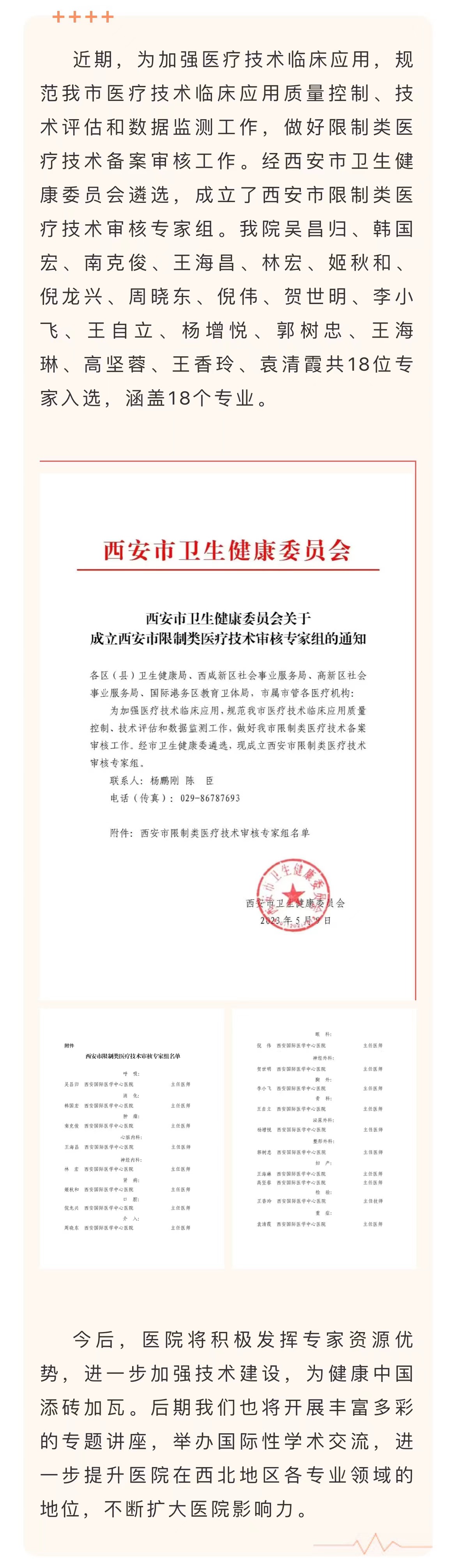 我院18位專家被納入西安市限制類醫(yī)療技術(shù)審核專家組