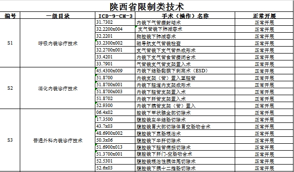 根據(jù)《醫(yī)療技術(shù)臨床應(yīng)用管理辦法》、《國家衛(wèi)生健康委辦公廳關(guān)于印發(fā)國家限制類技術(shù)目錄和臨床應(yīng)用管理規(guī)范(2022年版)的通知》及《陜西省醫(yī)療技術(shù)臨床應(yīng)用管理辦法實(shí)施細(xì)則 (陜衛(wèi)醫(yī)發(fā)〔2020〕64號 )》等文件要求,醫(yī)教部于前期梳理各科室上報(bào)材料,并組織院級醫(yī)療技術(shù)管理委員會審核論證,對于我院已開展的國家級和省級限制類技術(shù)已完成備案工作?,F(xiàn)將我院已開展的限制類技術(shù)公布如下。