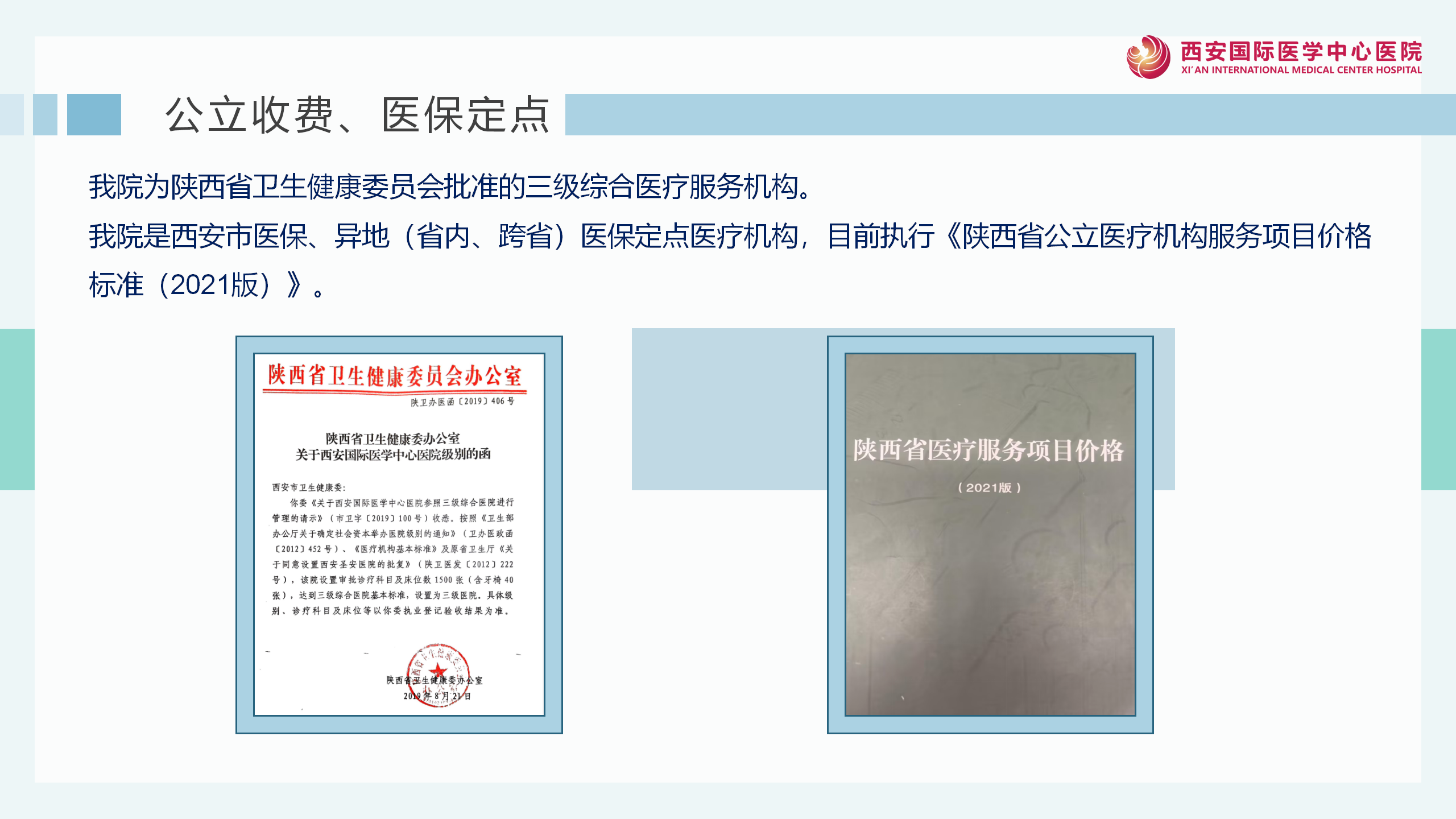 • 國內(nèi)首家高分通過JCI認證的醫(yī)院 西安國際醫(yī)學中心醫(yī)院為國內(nèi)首家高分通過JCI認證的醫(yī)院,該稱號由國際醫(yī)療機構(gòu)認證聯(lián)合委員會頒布。