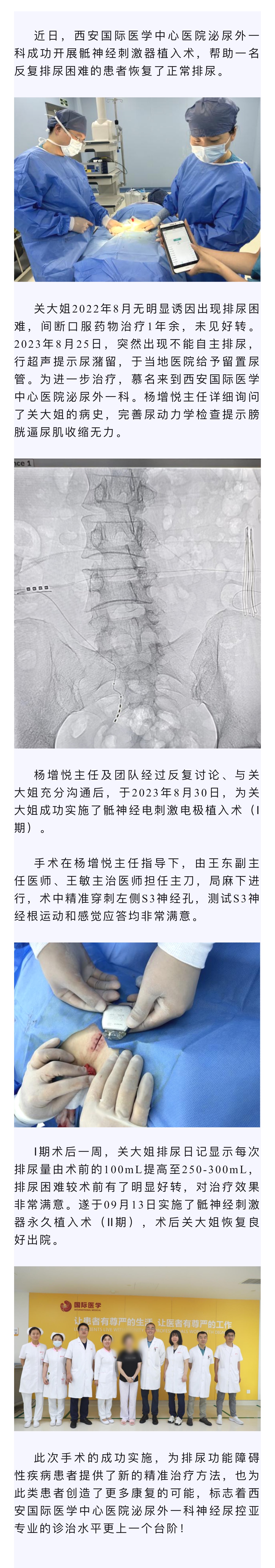 小小設備解決排尿大問題——西安國際醫(yī)學中心醫(yī)院泌尿外科成功開展骶神經(jīng)刺激植入術