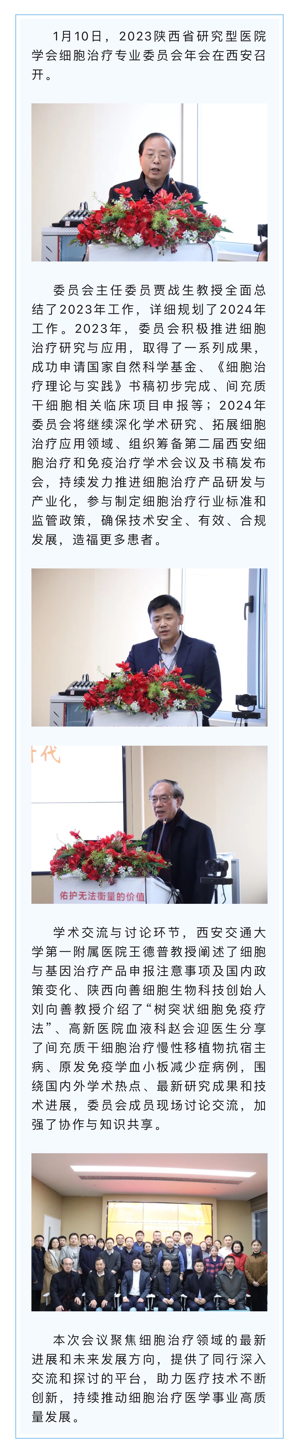 陜西省研究型醫(yī)院學(xué)會細(xì)胞治療專業(yè)委員會年會在西安召開