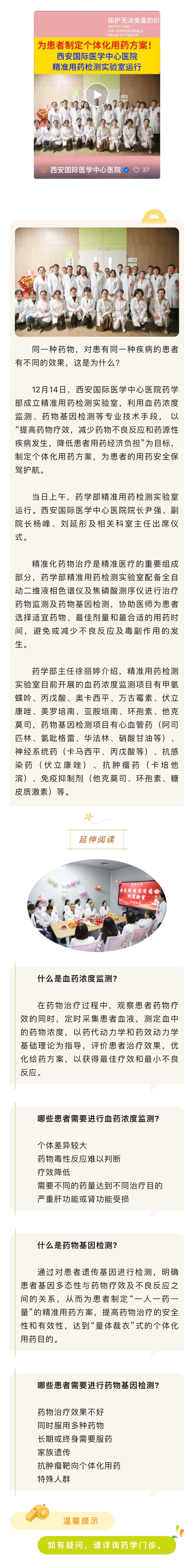 為患者制定個體化用藥方案!西安國際醫(yī)學(xué)中心醫(yī)院精準(zhǔn)用藥檢測實驗室運行