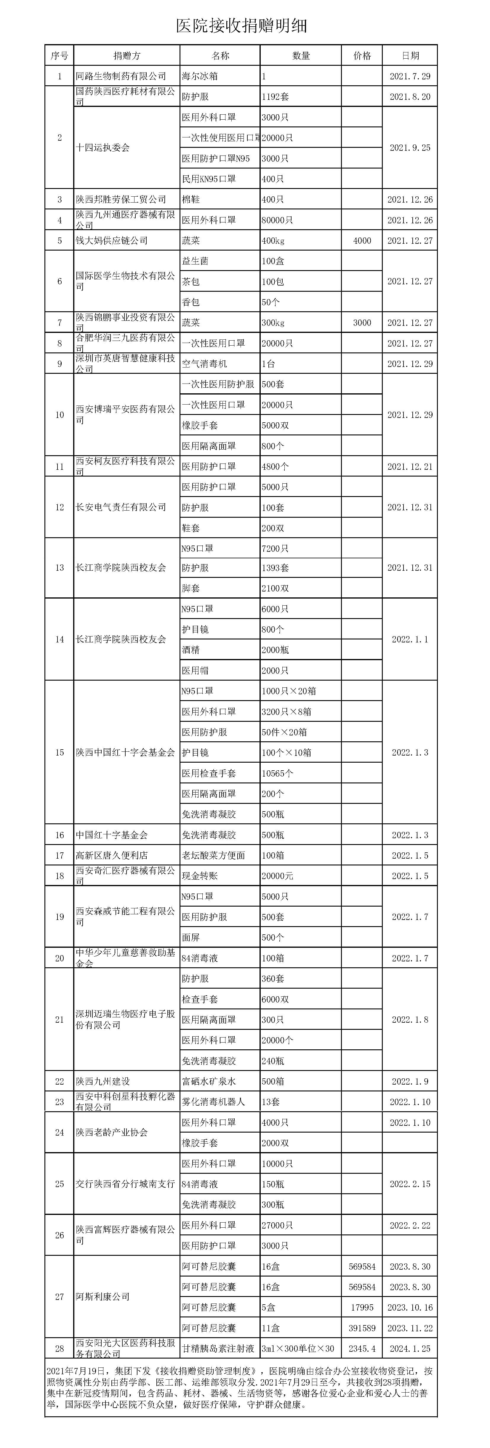 疫情期間接收物資主要有食品類、服飾類、清潔用品類、消毒用品等,物資主要有;方便面、礦泉水、84消毒液、慕斯軟墊、鞋子、拉拉褲、醫(yī)用垃圾袋、15L垃圾桶、等。捐贈物資均是通過庫房管理員簽字接收直接入庫管理,領(lǐng)取方式:經(jīng)各部門領(lǐng)導(dǎo)同意后按要求發(fā)放,統(tǒng)一制定發(fā)放模版,部門(領(lǐng)用人)簽字,領(lǐng)用流程結(jié)束。庫房管理員將所有物資發(fā)放明細同步按類別歸檔保存。