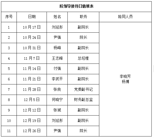 西安國際醫(yī)學中心醫(yī)院院領(lǐng)導接待日排班表