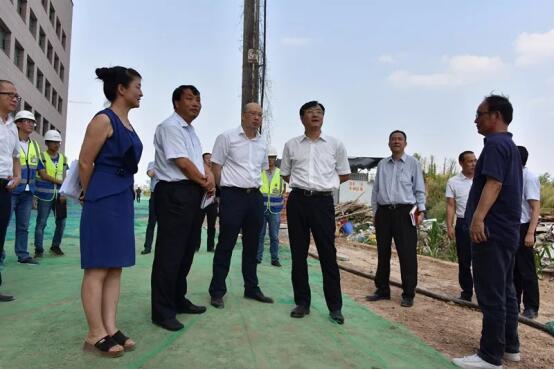 調(diào)研中,鐘洪江一行檢查項(xiàng)目建設(shè)進(jìn)度,在工地現(xiàn)場與國際醫(yī)學(xué)實(shí)際控制人劉建申、董事長史今進(jìn)行工作溝通,深入了解企業(yè)當(dāng)前建設(shè)面臨的實(shí)際問題,現(xiàn)場協(xié)調(diào)解決。